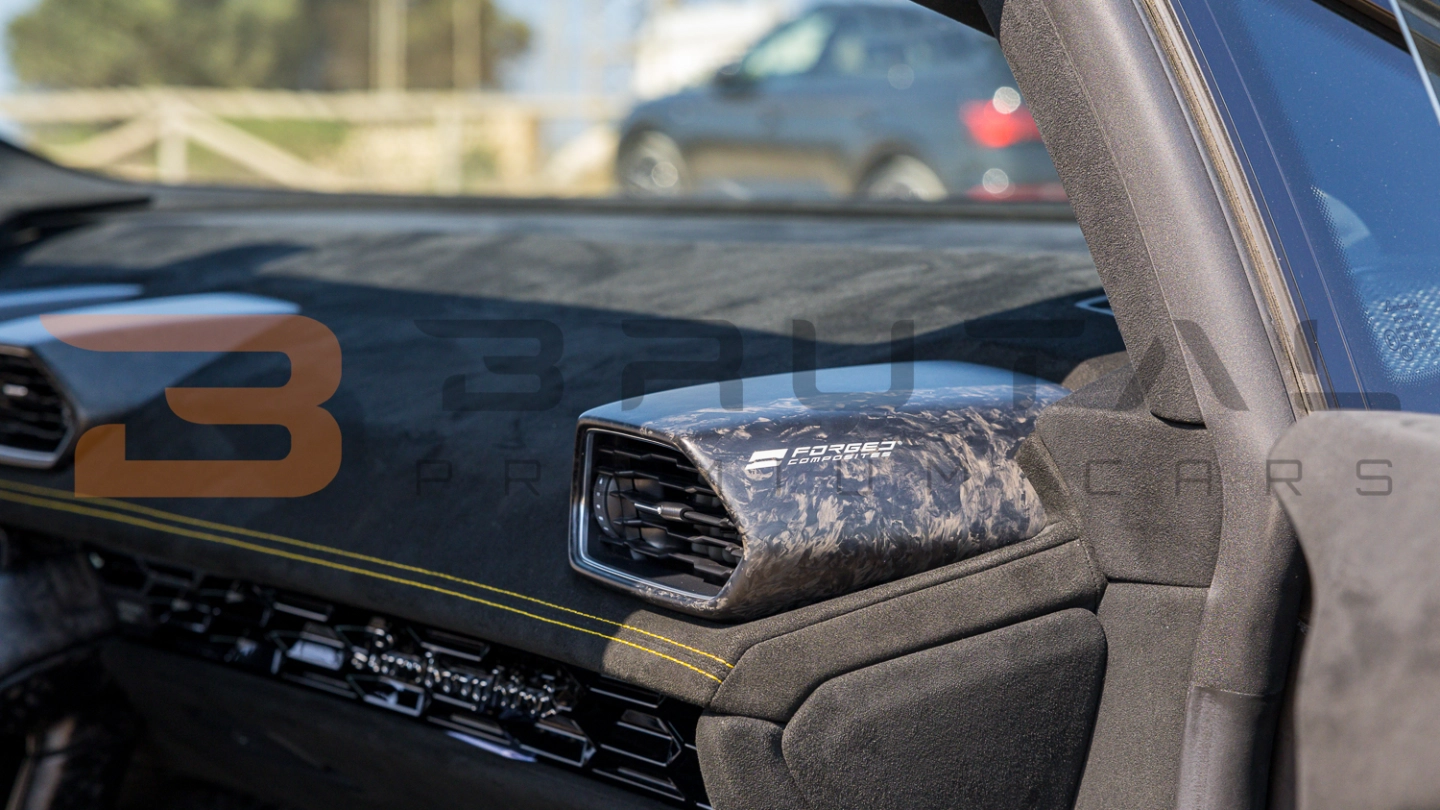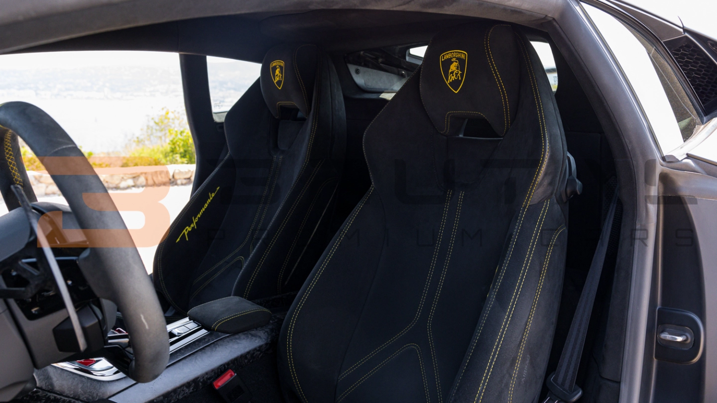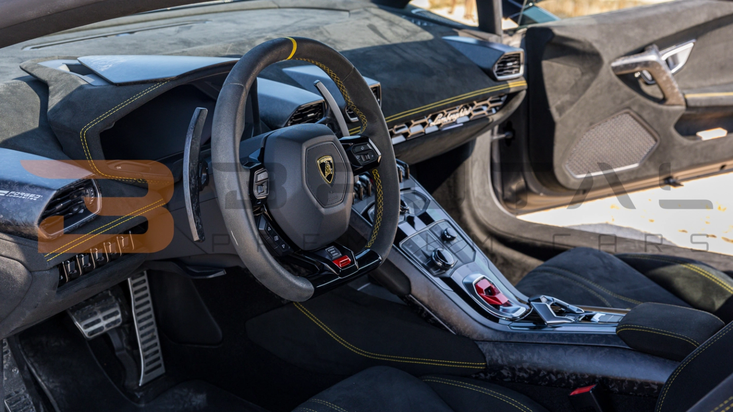 El coche presenta un diseño agresivo y aerodinámico, con detalles en fibra de carbono tanto en el interior como en el exterior, reforzando su carácter deportivo y exclusivo. El habitáculo combina lujo y deportividad, ofreciendo una experiencia de conducción envolvente que solo un Lamborghini puede proporcionar.